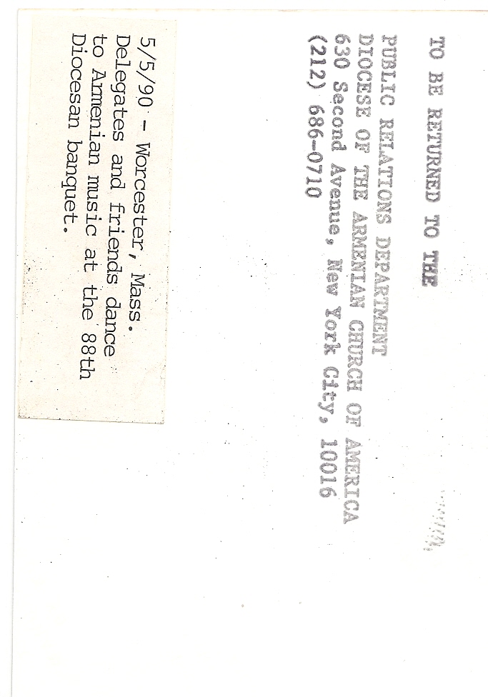Summary: Delegates and friends dance to Armenian music at the 88th Annual Diocesan Banquet. Back end of photo.