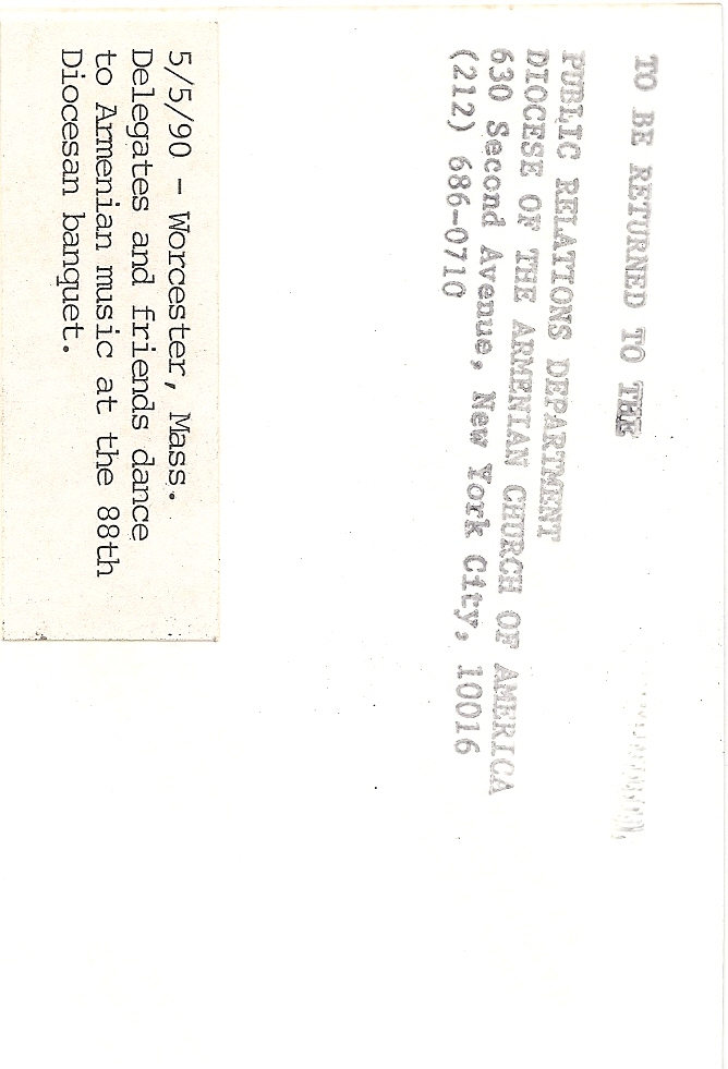 Biographical or Historical Data: Photo taken on May 5th, 1990 at the Armenian Diocese of America.