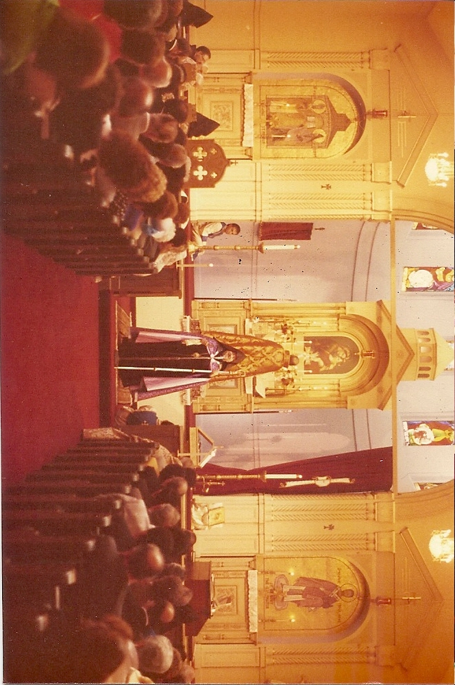 Summary: Archbishop Nersess Bozabalian gives the hoily during a celebration of the divine liturgy. Front side of photo.