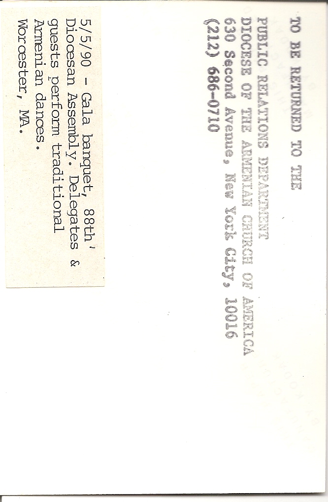 Summary: Delegates and guests perform traditional Armenian dances at the 88th Diocesan Assembly Gala banquet. Back end of photo.