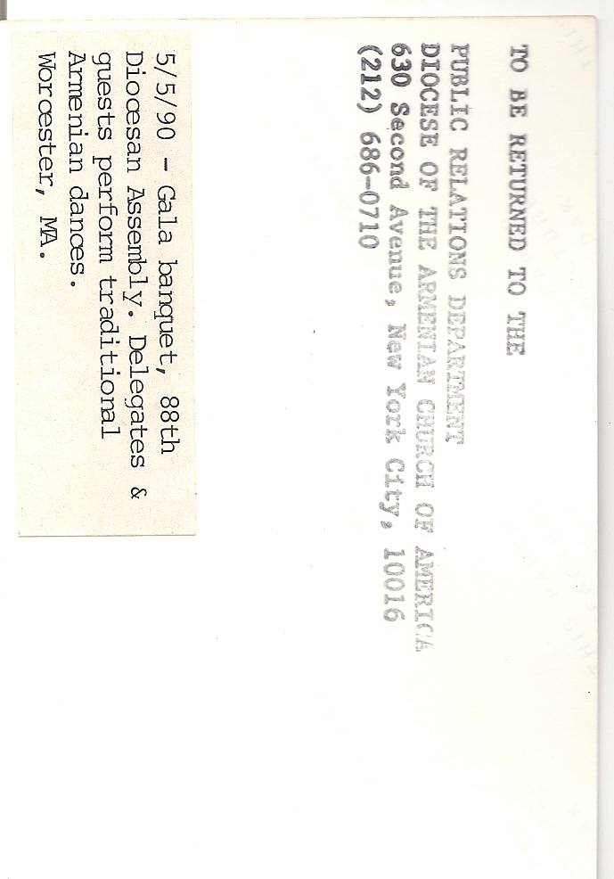 Summary: Delegates and guests perform traditional Armenian dances at the Gala banquet at the 88th Annual Diocesan Assembly. Back end of photo.