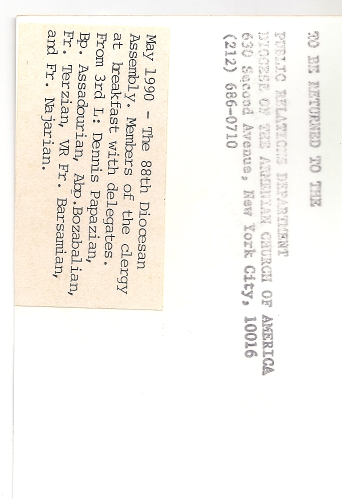Summary: Members of the clergy at breakfast with the delegates. Back end of photo.