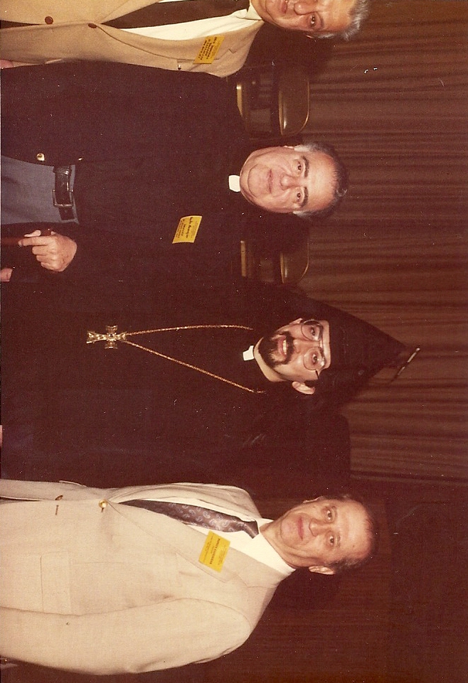 Summary: Khajag Barsamian with some of the parishioners. Front end of photo.