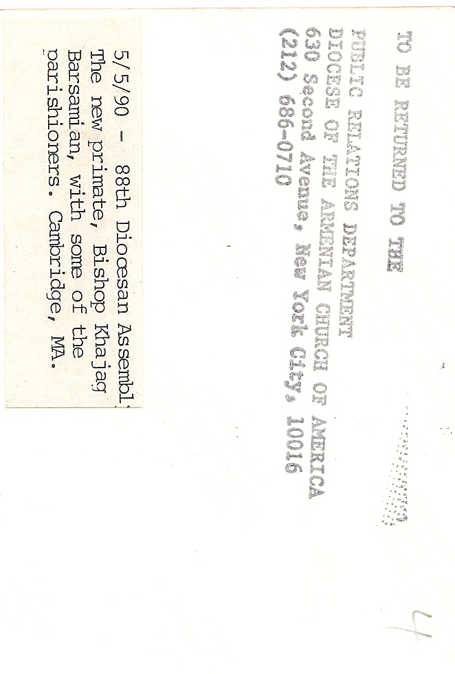 Summary: The new primate, Khajag Barsamian, with some of the parishioners. Back end of photo.