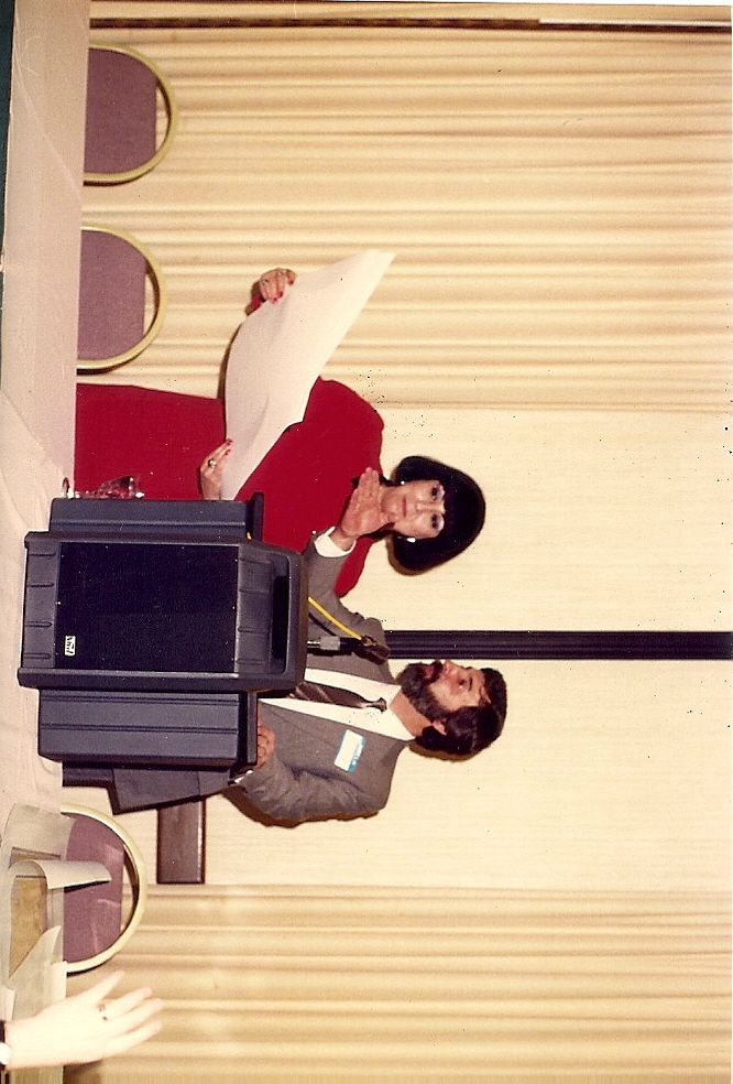 Summary: ALLAR director Sylvia der Stepanian with lecturer Dr. Kevork Bardakjian at the 88th Diocesan Assembly. Front end of photo.