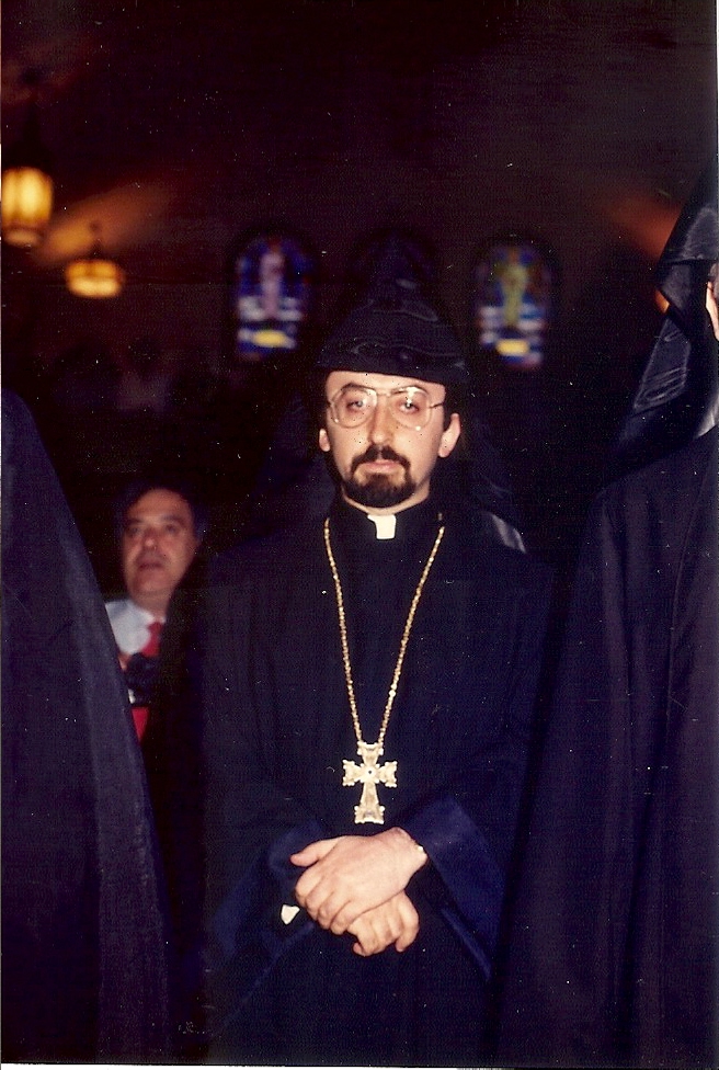 Summary: Very Reverend Khajag Barsamian at St. Vartan Cathedral. Front end of photo.