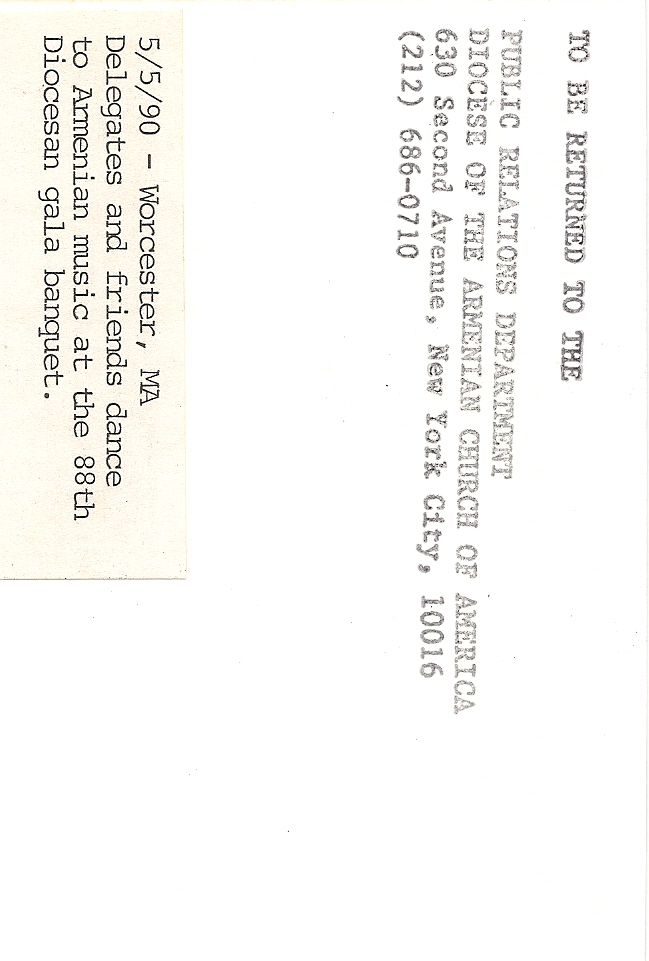 Summary: Delegates and friends dance to Armenian music at the 88th Annual Diocesan gala banquet. Back end of photo.