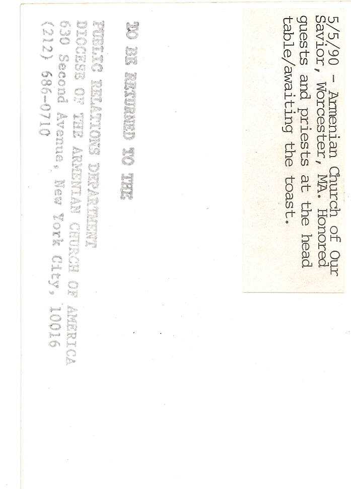 Biographical or Historical Data: Photo taken on May 5th 1990 at the Armenian Church of Our Savior.