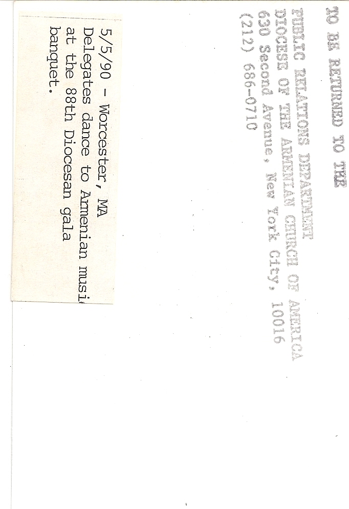 Summary: Delegates dance to Armenian music at the 88th Annual Diocesan gala banquet. Back end of photo.