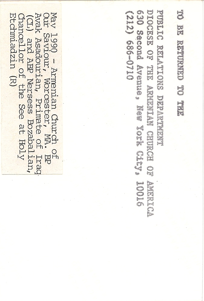 Biographical or Historical Data: Photo taken on May 1990 at the Armenian Church of Our Savior.