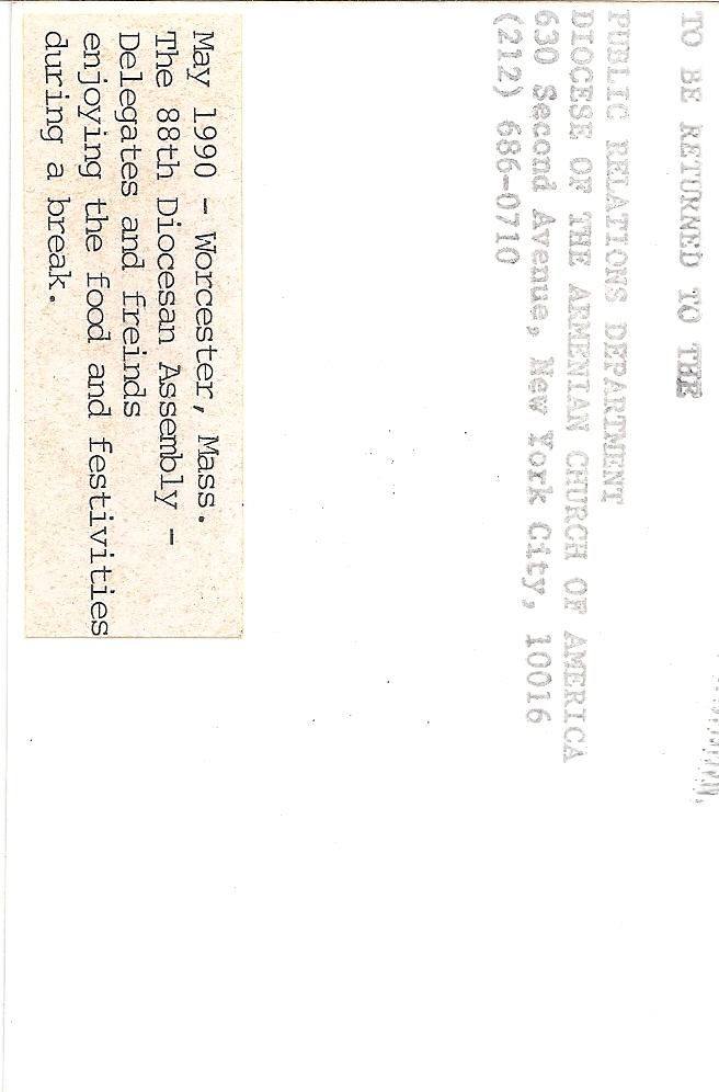 Summary: 88th Diocesan Assembly. Delegates and friends enjoying the food and festivities during a break. Back end of photo.