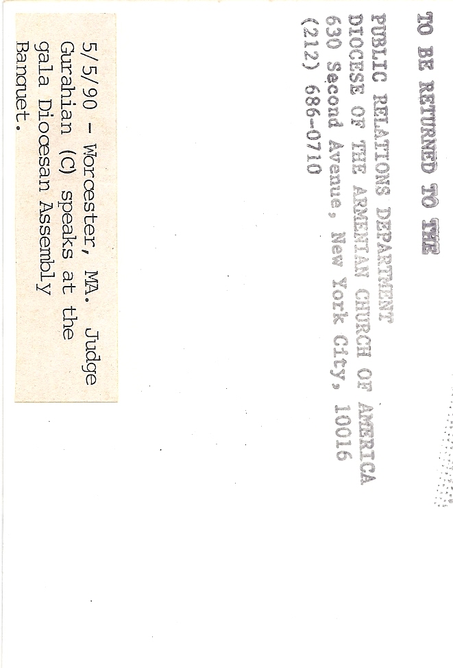 Summary: Judge Gurahian speaks at the Diocesan Assembly banquet. Back end of photo.
