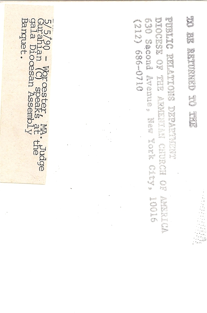 Summary: Judge Gurahian speaks at the Gala Diocesan banquet. Back end of photo.