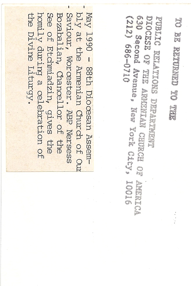 Biographical or Historical Data: Photo taken on May 1990 at the Armenian Church of Our Savior in Worcester, Massachusetts.