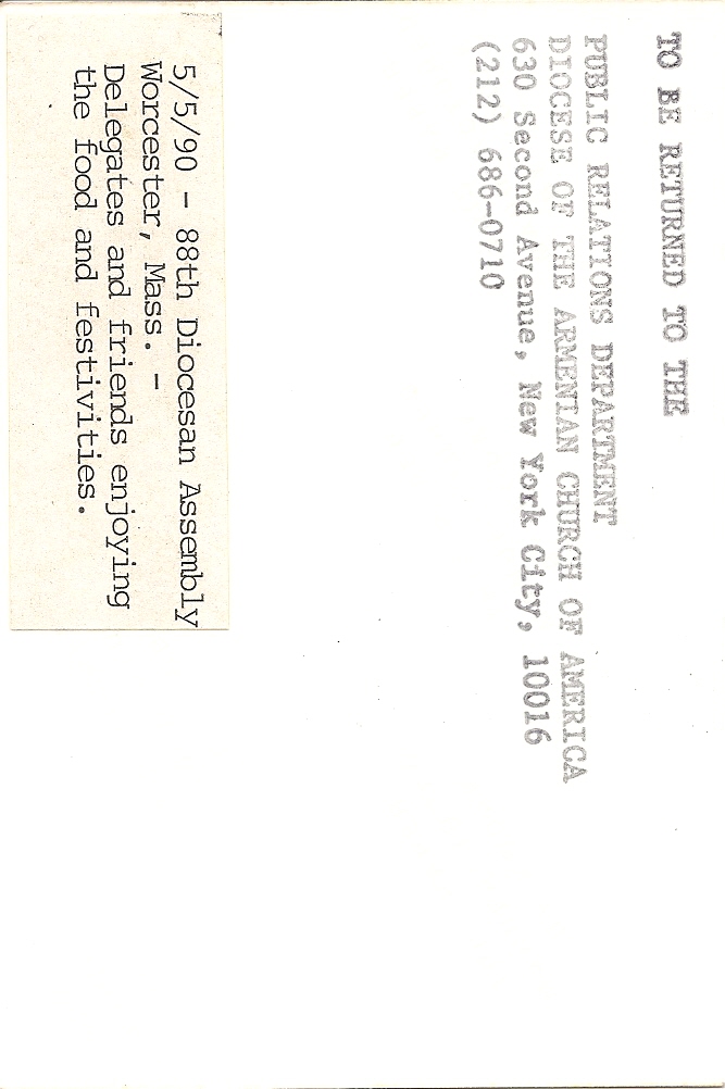Biographical or Historical Data: Photo taken on May 5th, 1990 at the 88th Diocesan Assembly in Worcester, Massachusetts.