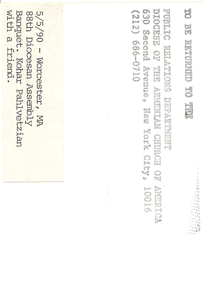 Summary: Kohar Phavletzian with a friend. 88th Diocesan Assembly. Front end of photo.