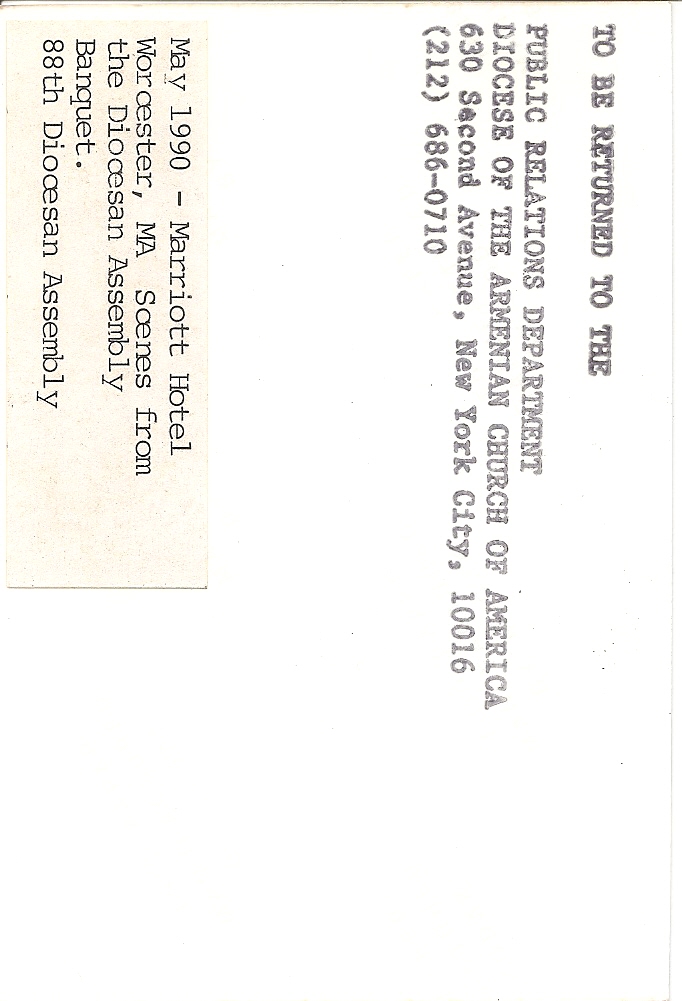 Biographical or Historical Data: Photo taken on May 1990 at the 88th Diocesan Assembly in Worcester, Massachusetts.