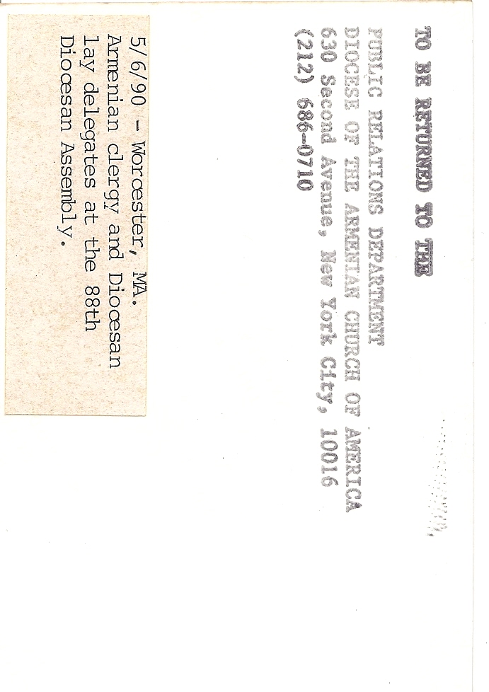 Summary: Armenian clergy and Diocesan lay delegates at the 88th Diocesan Assembly. Back end of photo.
