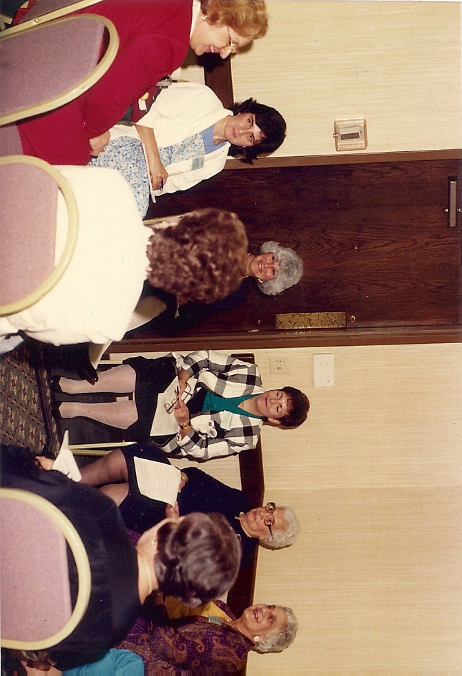 Summary: Women's Guild holding their annual meeting. Front end of photo.